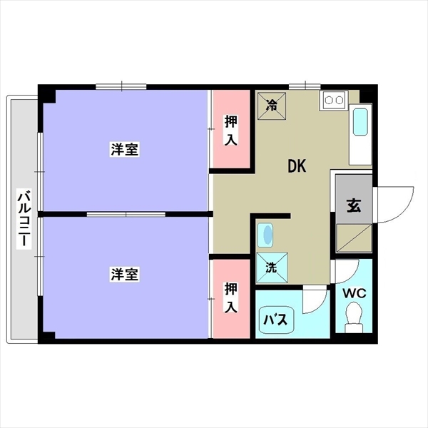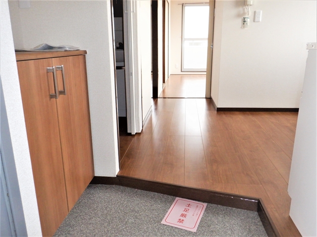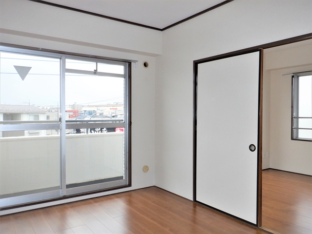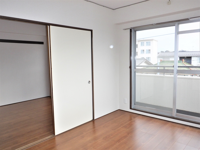 | 設備 | 角部屋、駅まで平坦、バス停徒歩3分以内、耐火構造、外壁タイル張り、南向き、南面2室、3面採光、当社管理物件、和室 ガスコンロ対応、キッチン、プロパンガス、バストイレ別、洗面化粧台、バルコニー、一部フローリング、クロゼット、収納2間 押入、インターホン、内装リフォーム済、二人入居相談、敷金1ヶ月、礼金1ヶ月、保証人不要、眺望良好、通風良好、陽当り良好 |