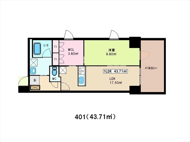 | 間取 | 1LDK | 専有面積 | 43.71㎡(13.22坪) | 築年月 | 2024年3月 |